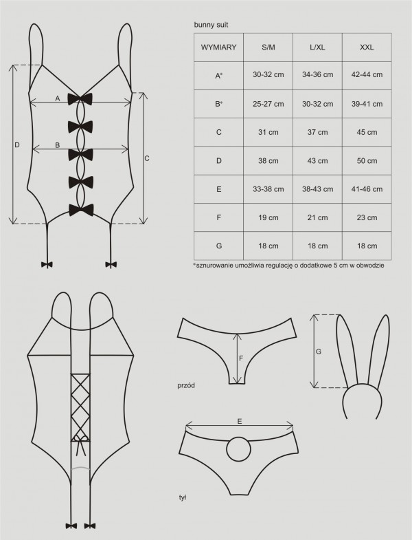 - Открытое черное боди с пажами для чулок. Спе­реди боди украшено милейшими бан­ти­ками цвета фуксии, а сзади шну­ровка, при помощи кото­рой Вы сможете зафик­си­ро­вать наряд строго по сво­ему размеру, под­тя­нуть живо­тик и при­под­нять грудь