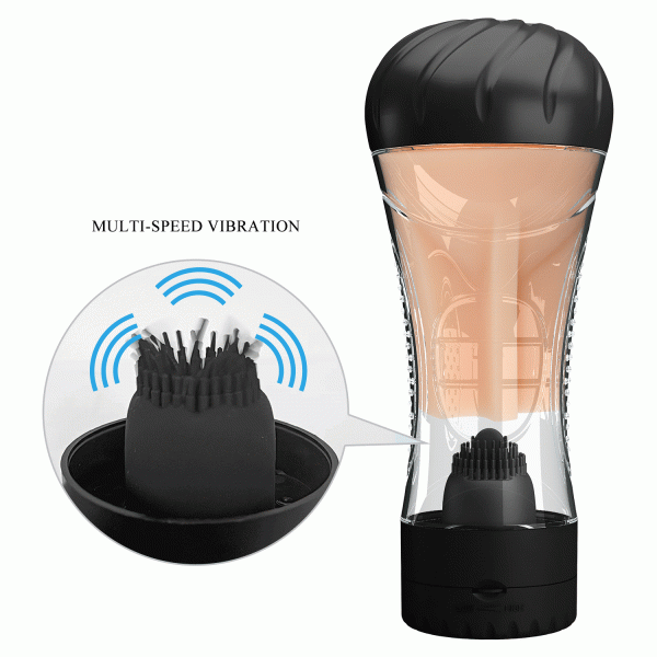 Колба мастурбатора выполнена из ABS-пластика и закрыта плотно крышкой. При вскрытии, открывается потрясающая картина - супер реалистичная вагина! Далее, пройдя сквозь вагину, половой член, а именно головка, касается нежнейшей россыпи силиконовых шипов в центре которых силиконовый язычок! Язычок и шипы с вибрацией!