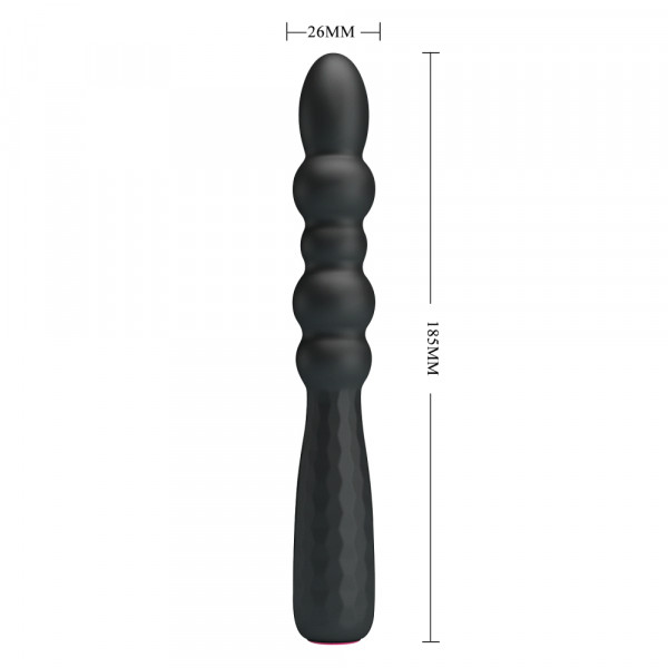 Выполнен вибратор в виде рельефного ствола из 5 шариков различного диаметра и удобной рельефной противоскользящей рукояти. Минимальный размер и диаметр девайса идеальны, даже для тех, кто впервые держит в руках анальную игрушку!