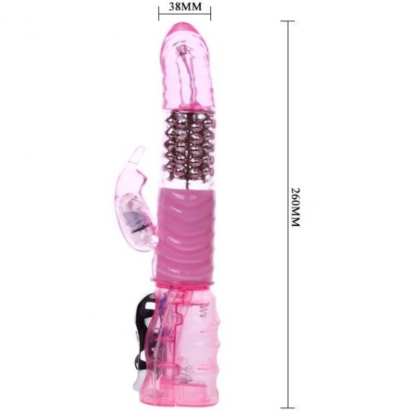 Вибратор-ротатор "Deluxe" классический хай-тек в нежно розовом цвете. Ярко выраженная головка, складки, имитирующие крайнюю плоть, блок металлических шаров и клиторальный зайка обещают неземные ласки клитора и лона одновременно!